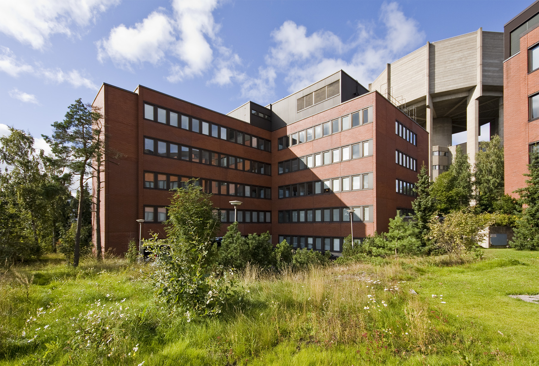 Toimistorakennus Ekono Oylle. Rakennus muodostuu kolmesta limittäin olevasta kuutiosta.