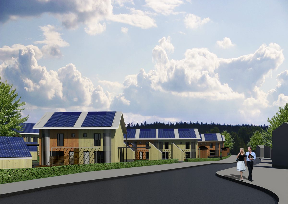 Suunnitelmissa tutkittiin Tampereen asuntomessuille toteutetun Lantti-nollaenergiatalon soveltuvuutta aluerakentamiseen. Aluellisen matalaenergiarakentamisen kohteeksi valikoitui kaksi korttelia asuntomessualueen läheltä, Vuoreksen Koukkurannan alueelta, jonne tehtiin vaihtoehtoisia viitesuunnitelmia kaavaluonnosten tueksi, joista yksi valittiin jatkokeihiitelyä varten. Suunnittelualue sijoittuu loivasti lounaaseen laskevaan rinteeseen ja sitä ympäröivät laajat metsävaltaiset puistoalueet. Kortteleiden välissä on itä-Iänsi-suuntainen katu, jota pitkin alueelle saavutaan. Kortteleista pohjoisempaan tehtiin tarkempi tarkastelu, sillä etelän puoleinen kortteli todettiin varjostavien puiden takia haasteelliseksi aurinkoenergian tuoton kannalta. Kortteliin on sijoitettu yhdeksän 2-5 asunnon muodostamassa rivitaloa, joissa on yhteensä 30 asuntoa. Kaavan vaatimat 45 autopaikkaa on sijoitettu rakennusten väliin ja päätyihin. Energiankulutuksen leikkaamiseksi rakennusten sekä pihavarastojen katolle on sijoitettu aurinkopaneeleita sekä aurinkokeräimiä. Rakennusten suuntauksessa ja uusiutuvan energian ratkaisuissa on hyödynnetty asuntomessutalosta saatuja tietoja ja kokemuksia sekä suunnitelmalle tehdyn alueellisen energiatarkastelun ja -simuloinnin tuloksia.