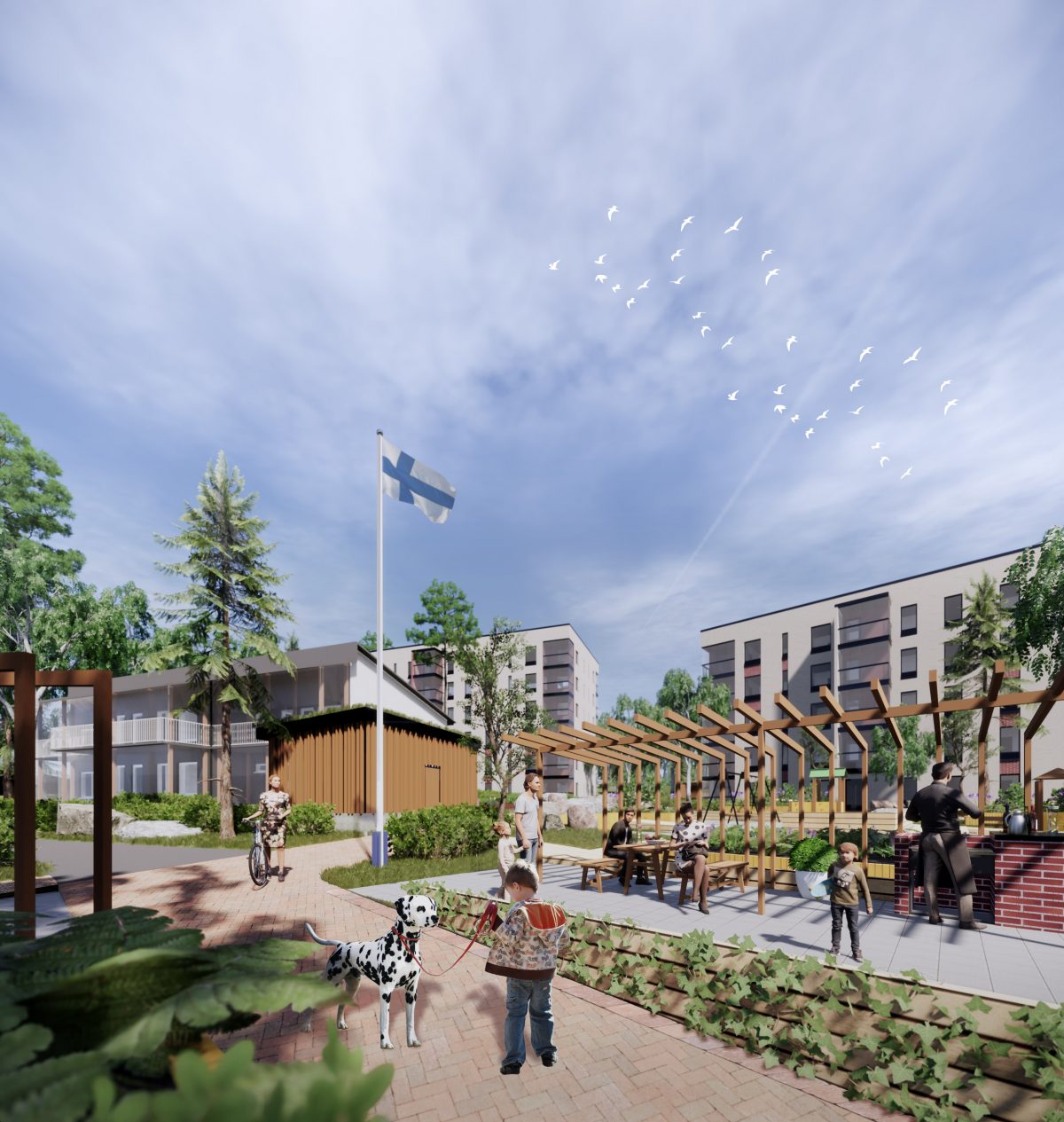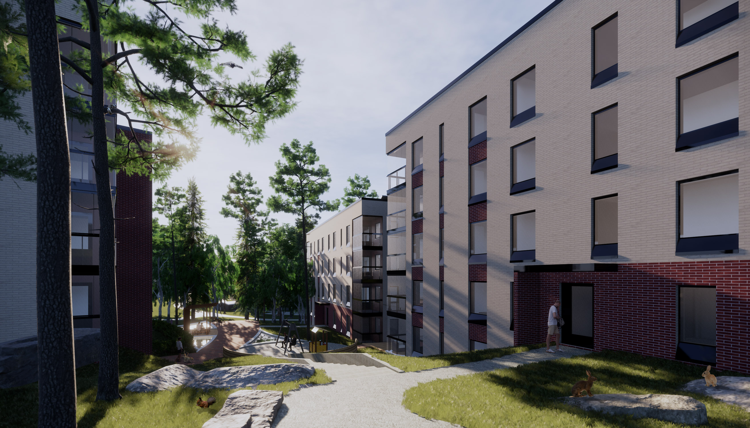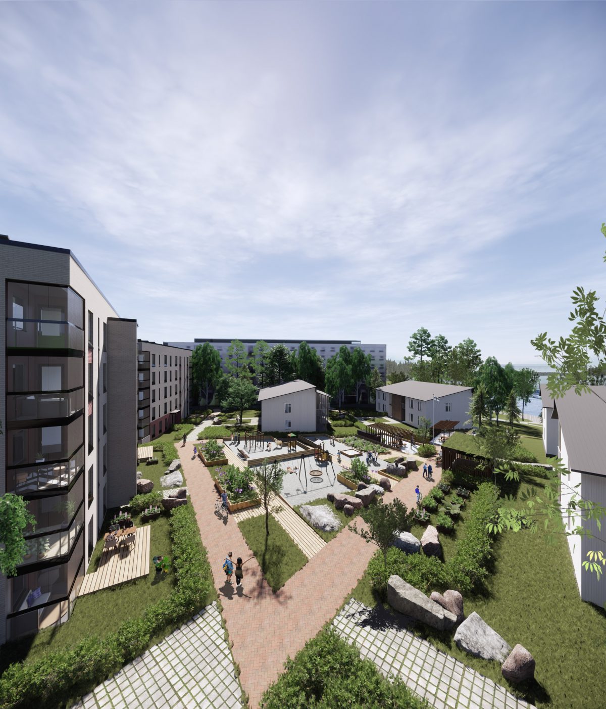 Uudiskortteleiden kaupunkikuvallinen rytmi muodostuu kerrostalopareista, jotka ovat kytketty toisiinsa yhteisöterasseilla. Rakennusten väleissä mutkittelee korttelit ja yhteisöterassit yhdistävä elämyspolku, jonka varrelle sijoittuvat aktiiviset piha-alueet ja yhteistilat. Polku johtaa kohdekorttelin keskellä sijaitsevaan suureen yhteisöpihaan, jota lännessä rajaavat matalammat puurakenteiset kerrospientalot. Asunnot ovat reilun kokoisia, ja niissä kaikissa on lasitetut parvekkeet. Suunnitteluratkaisujen rationaalisuus, normaali kerroskorkeus sekä rakennusteknisesti yksinkertaiset julkisivut mahdollistavat kohtuuhintaisen toteutuksen. Rakennuksissa pyritään mahdollisimman energia- ja ekotehokkaisiin ratkaisuihin tilankäytön, lämmityksen, ilmanvaihdon sekä valaistuksen osalta.